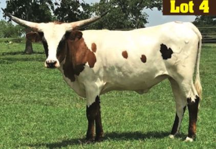 Comments: OCV. Kitty Star is a fancy Parker brown and white heifer that shows a lot of promise. She comes to the sale bred to Lucchese Star, a son of Cowboy Tuff Chex, longest horned bull in the breed, and out of Kinetic Motion of Stars, longest horned cow in the breed. This will be one knock out calf! Kitty is gentle, has great conforma- tion and will be a winner in the horn department. Take her home to be a part of your herd and you will be pleased.