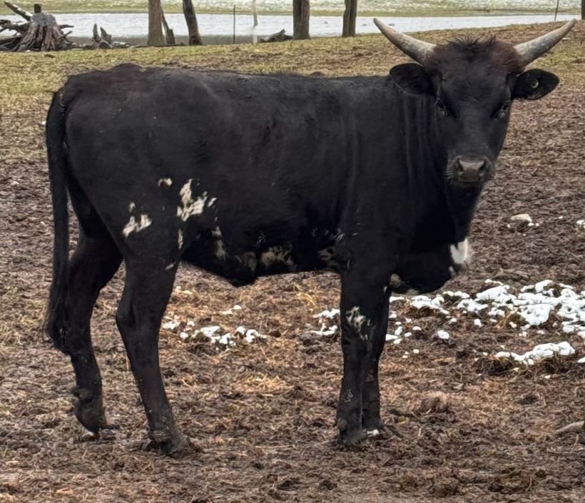 horned black cows in the breed, Texana Van Horne. On the bottom side of her pedigree, she