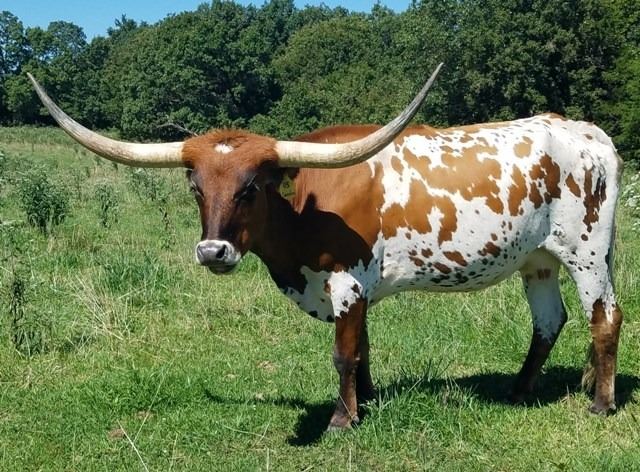 Comments: Centerfold has the color, conformation, horn with elite breeding. She was a 2015 HSC Futurity class winner & Jr Grand Champion female. Exposed to HL Rainmaker (Vindicator x HL Concealed Raindrop, Concealed Weapon daughter). Sold with a straw of 703 RHF Sharp Shooter semen. Phenomenal package right here!