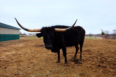 A striking black cow with a great pedigree that is always a visitor favorite. Her dam has produced several 70 and 80 inch offspring. I’ve gotten two bull calves out of her. Comes with an all black JP Rio Grande bull calf at side born 5/25/15. Potential herd sire or $900 roper...you choose. OCV.Click to View