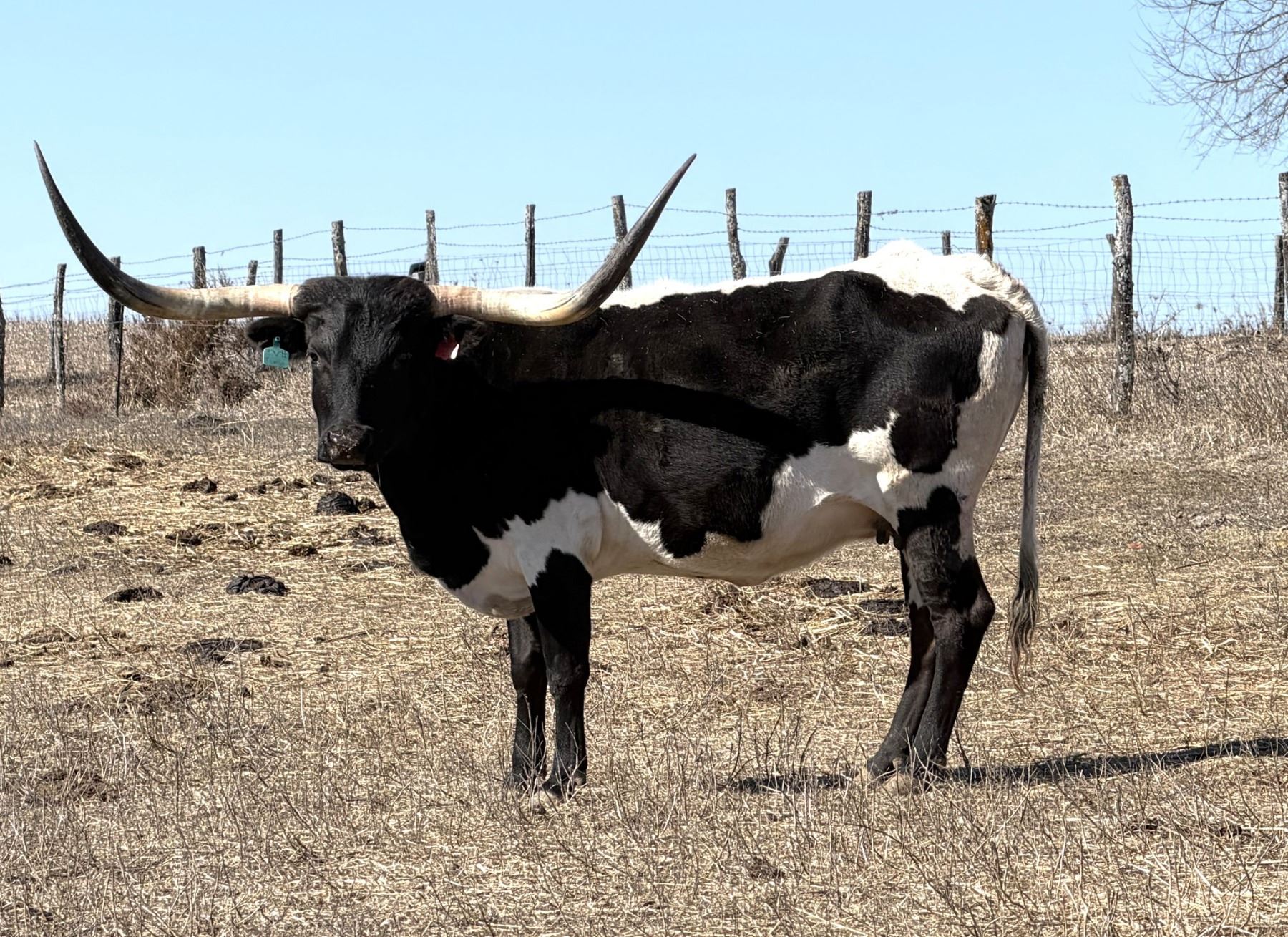 Comments: This is a very nice true black and white cow who has out produced herself as we are retaining her 2023 heifer. She is a WS Midnight Weapon daughter who throws dominate black and white with lateral horn.