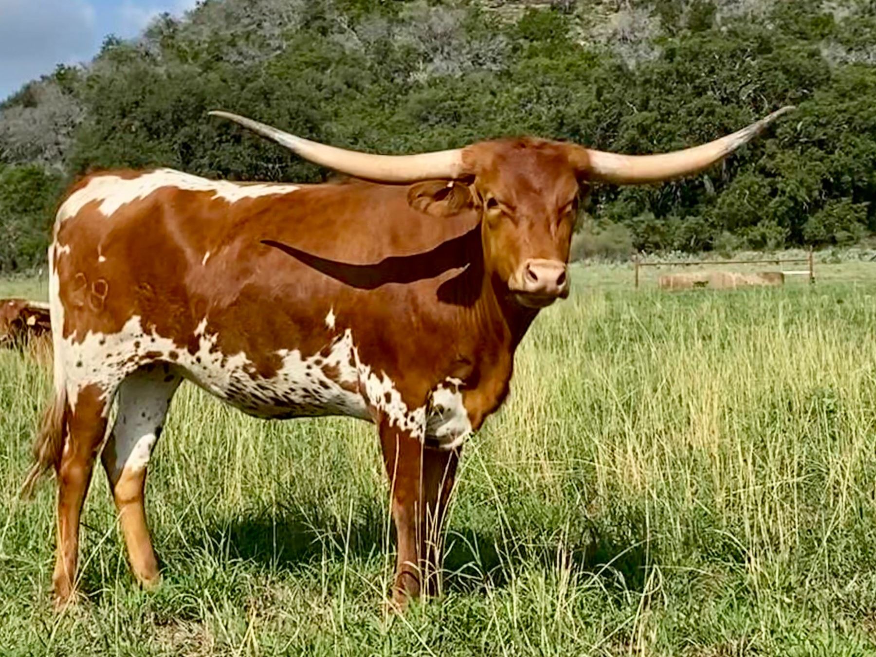 COMMENTS: LM Princess Atta is an exciting young cow with a low sweeping horn set out of one of our favorite longhorns, 95” 3S Tari’s TD. On our first visit to the Sparger’s 3S Ranch, LM Princess Atta’s dam was the one we wanted first - not her famous pasture mates. Some cows are just regal - and she is that. Princess Atta is well on her way to maturing into a gorgeous cow like her dam. Her pedigree boasts the Guinness World Record bull in Cowboy Tuff Chex, and she’s bred to the only bull out of Guinness World Record cow, 110+” 3S Danica. The calf at side may be worth more than Princess Atta one day! Bid with confidence on this one.