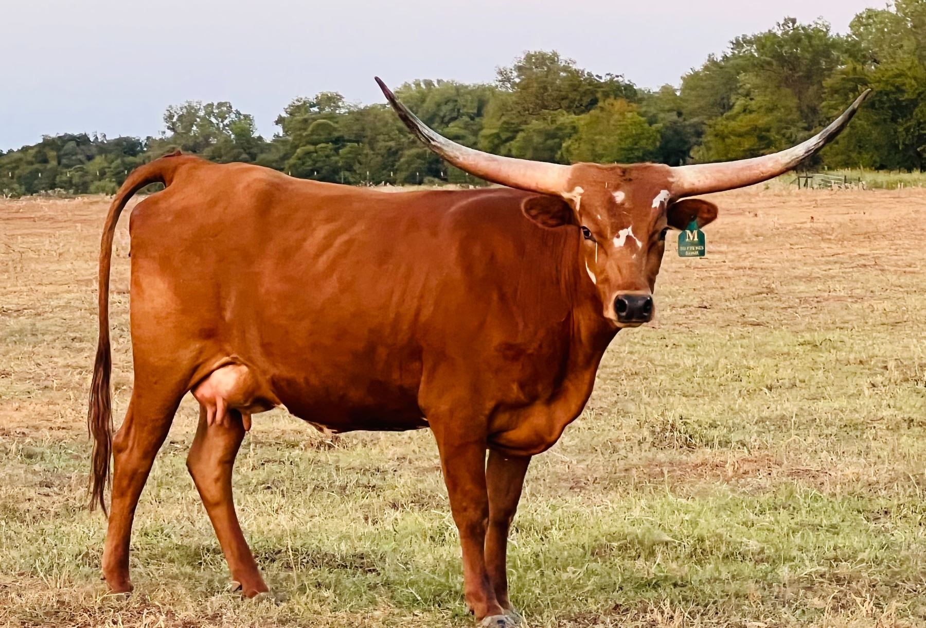 Comments: With respected Doug Hunt as her breeder. Rosie has RC Neptune (Respect Me X RC Pacific Mermaid) on the top and Hunts HCR Genuine Risk (96” total horn) on the bottom. This mating rings for great things in her future. She has an amazing bull calf at her side out of up-and-coming gruella bull BIG NEWS! To top it off she’s exposed to powerhouse ultimate bull WS HYDRO for a possible 3 in 1. Hydros calves are hitting the ground here at M7 and they are spectacular! Don’t miss out on this futurity winning combination!