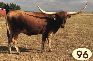 Comments: OCV. A big horned young lady that has a stacked 90” and 80” horn pedigree top and bottom. To top it off...Karri will be exposed to our M2 Tuff Luck, adding two more over 90” TTT and several 80” TTT pedigrees for a star-studded 2018 super calf...BAM! 2018 calf will have three over 90” TTT and Stacked 80” TTT. Don’t miss this one. Breeding info available on sale date.