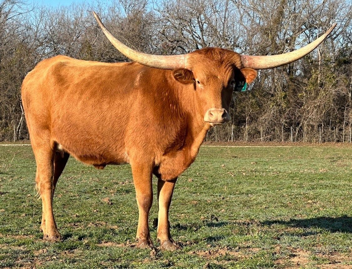 COMMENTS: Here’s an own daughter of the famous and prettiest Longhorn, WF Painted Lily 333. M7 Fancy Lily is loaded with legends, like Cowboy Catchit Chex, Tempter, BL Rio Catchit, Field of Pearls and Tari Graves FM49. Her mother is one of the prettiest cows in the breed and she will roll out just like her and be a big time cow!