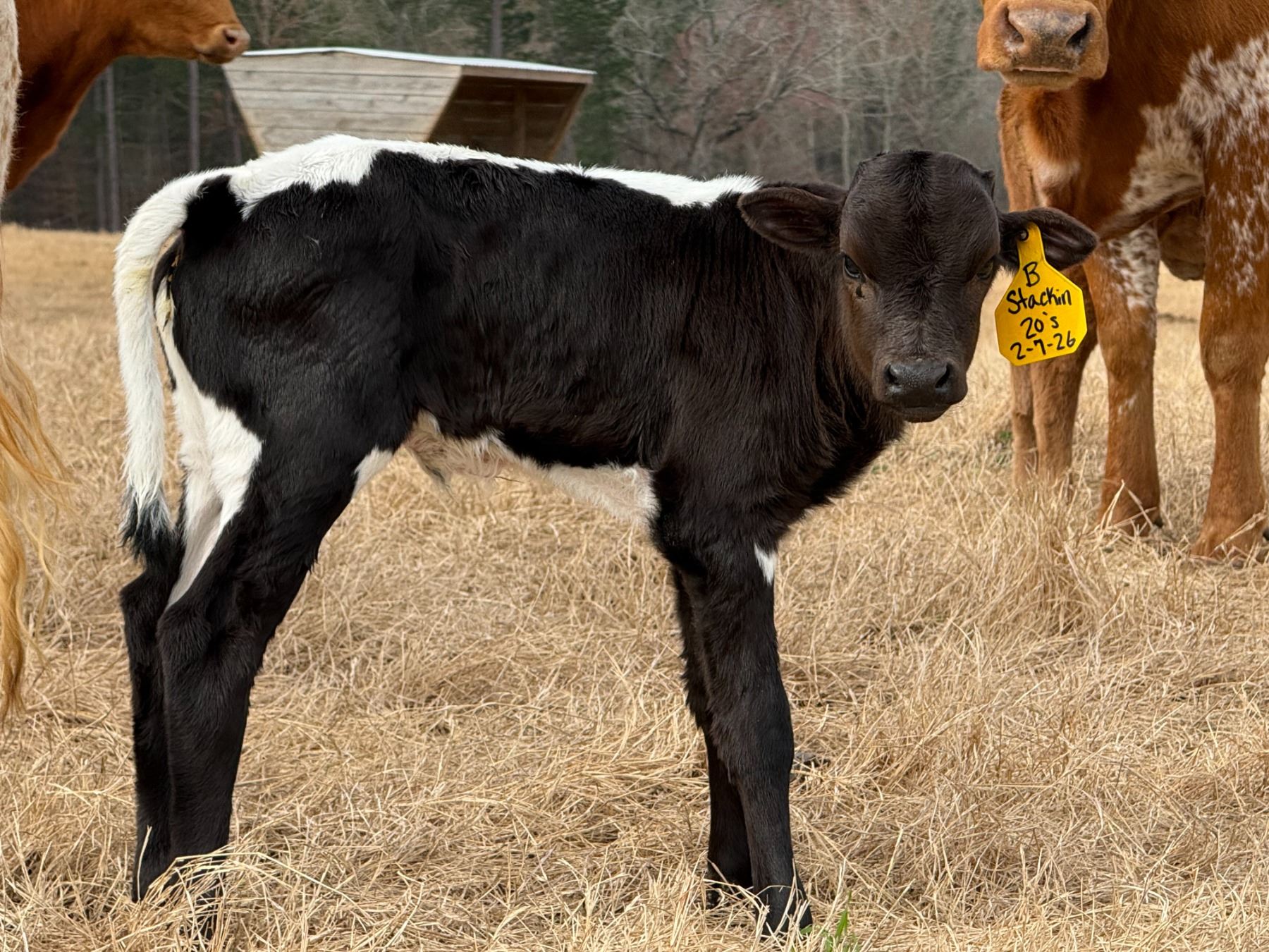 Bull calf at side born 2/7/26 sired by PCC Dark Dust