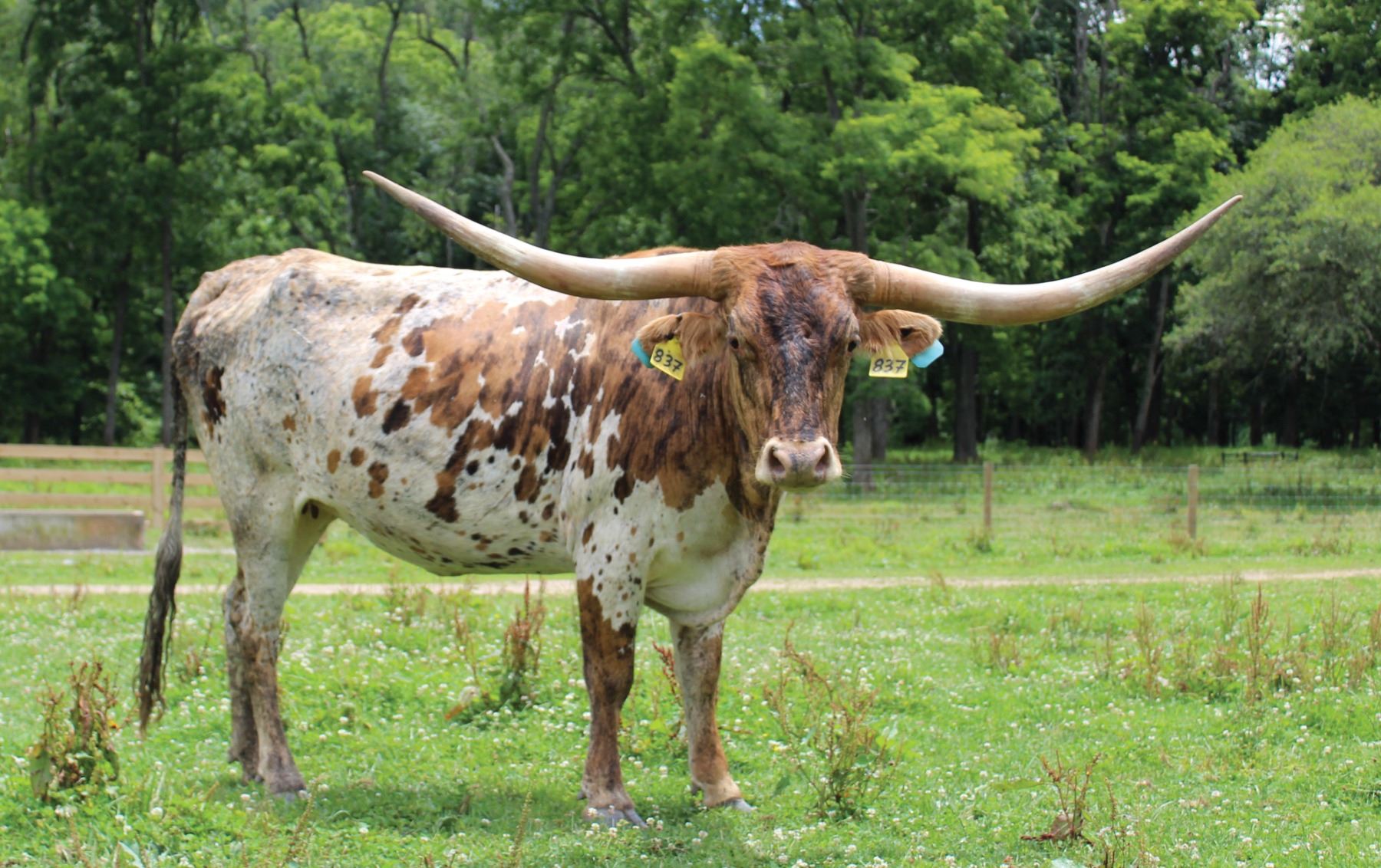 COMMENTS: Doubles back to Maximus ST. She’s gentle in the pasture and pretty to look at. Flat horns measured 75.75” TTT on 12/15/2021. Bred to our lead herd sire Time Line (JP Rio Grande & Dragon Pearl) who measures shy of 90” TTT. The brindle will flow nicely through this genetic package.