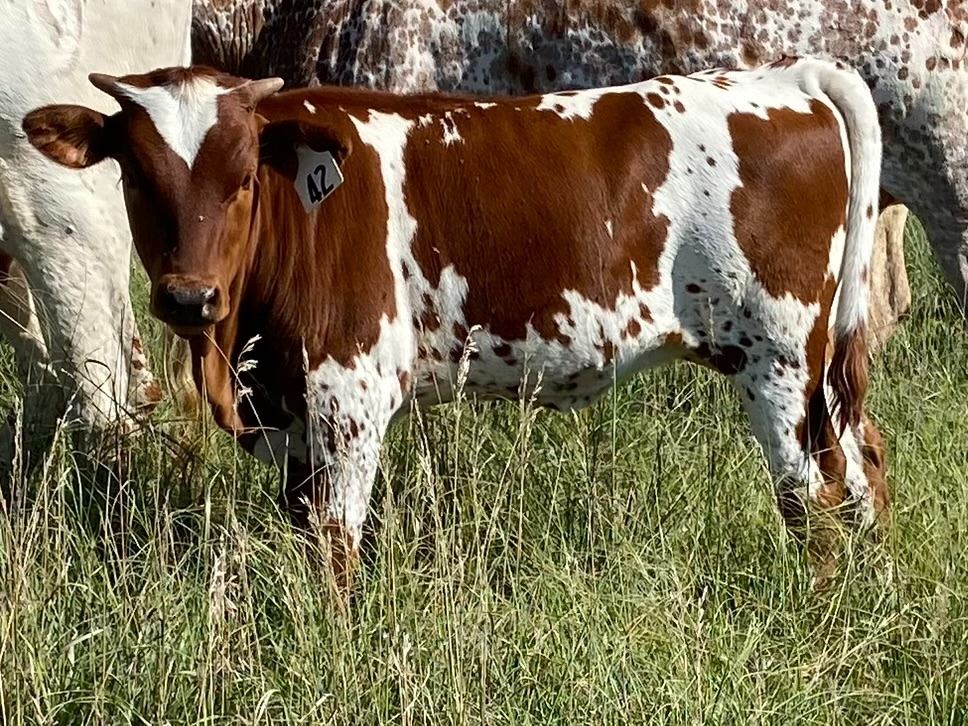 Look at this flashy heifer calf who is out the heart of the MCR program. Her dam is MCR Maxi Smoke who is an own daughter of Smoky Diamond. Her dam is the famous Miss Husker ST who was a multi-year Grand Champion cow at the Nebraska State Fair. This calf has a birth record on file with the TLBAA and will be assigned to the new owner after the sale. The new owner can pick out her name, put their brand and private herd number on her and complete the registration process.