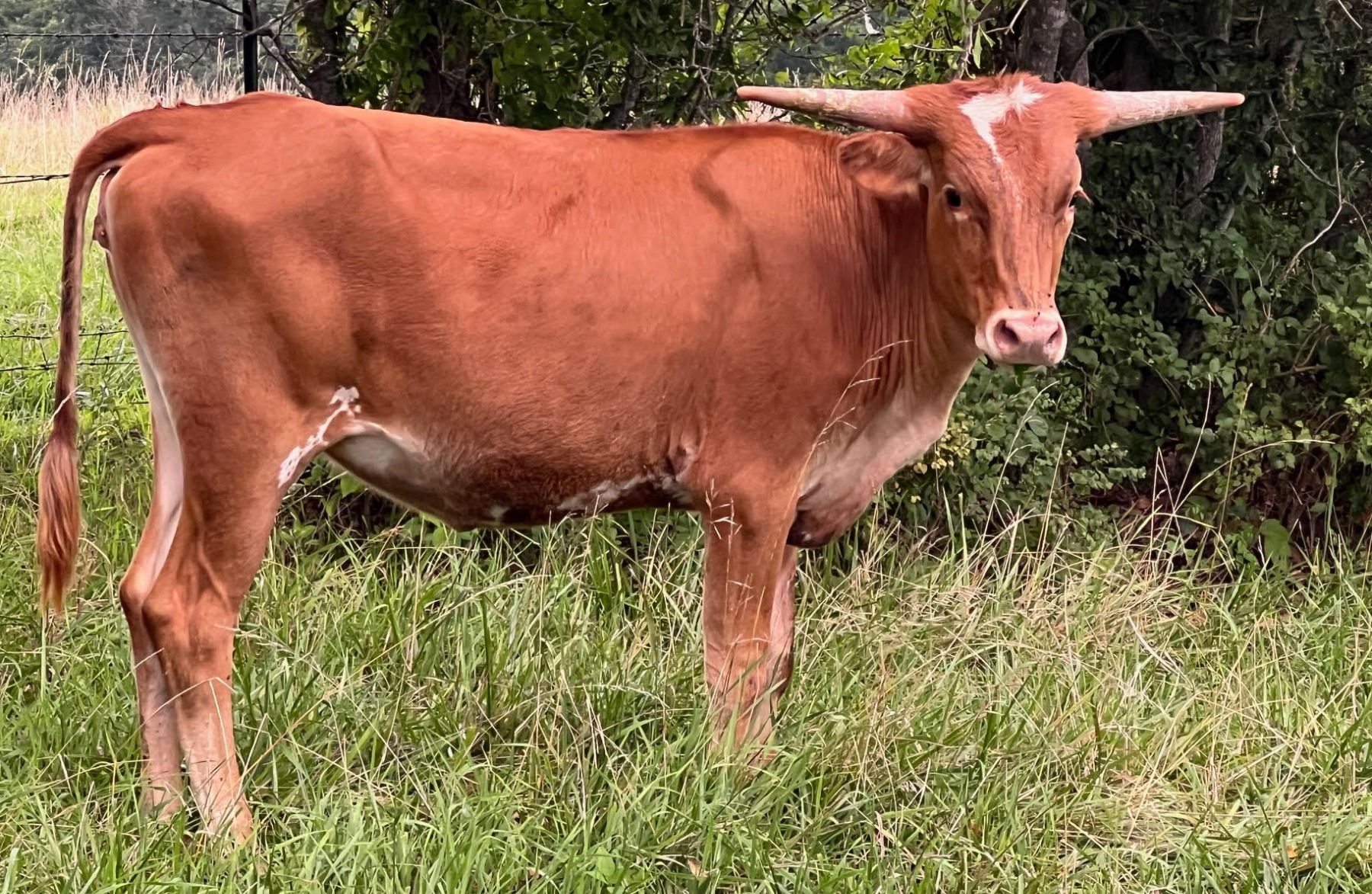 Comments: Flat horned heifer with a lot of brindle in her pedigree. Many