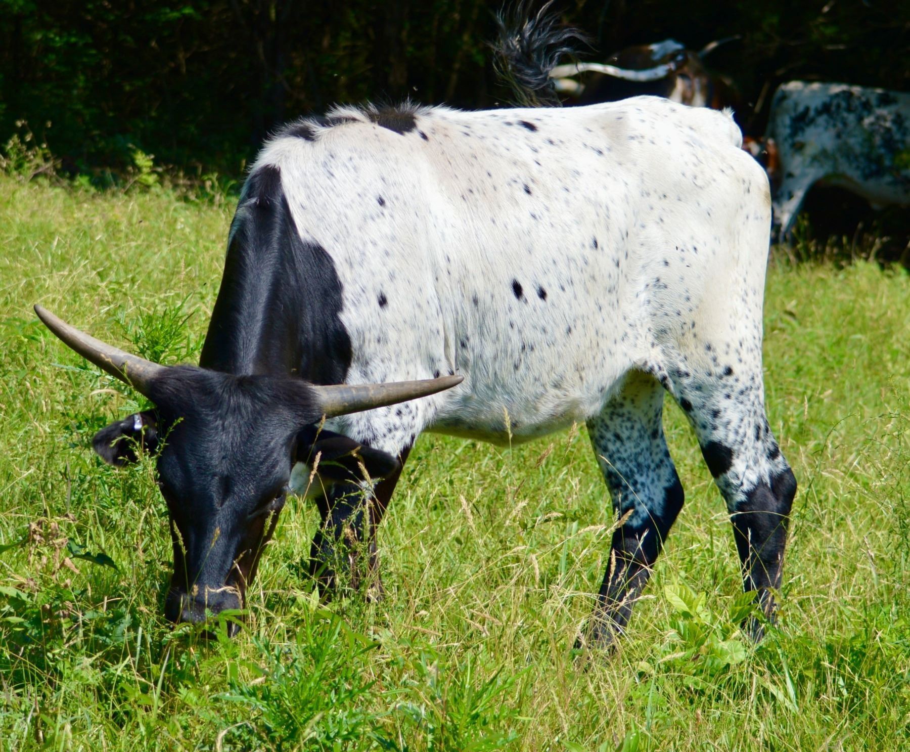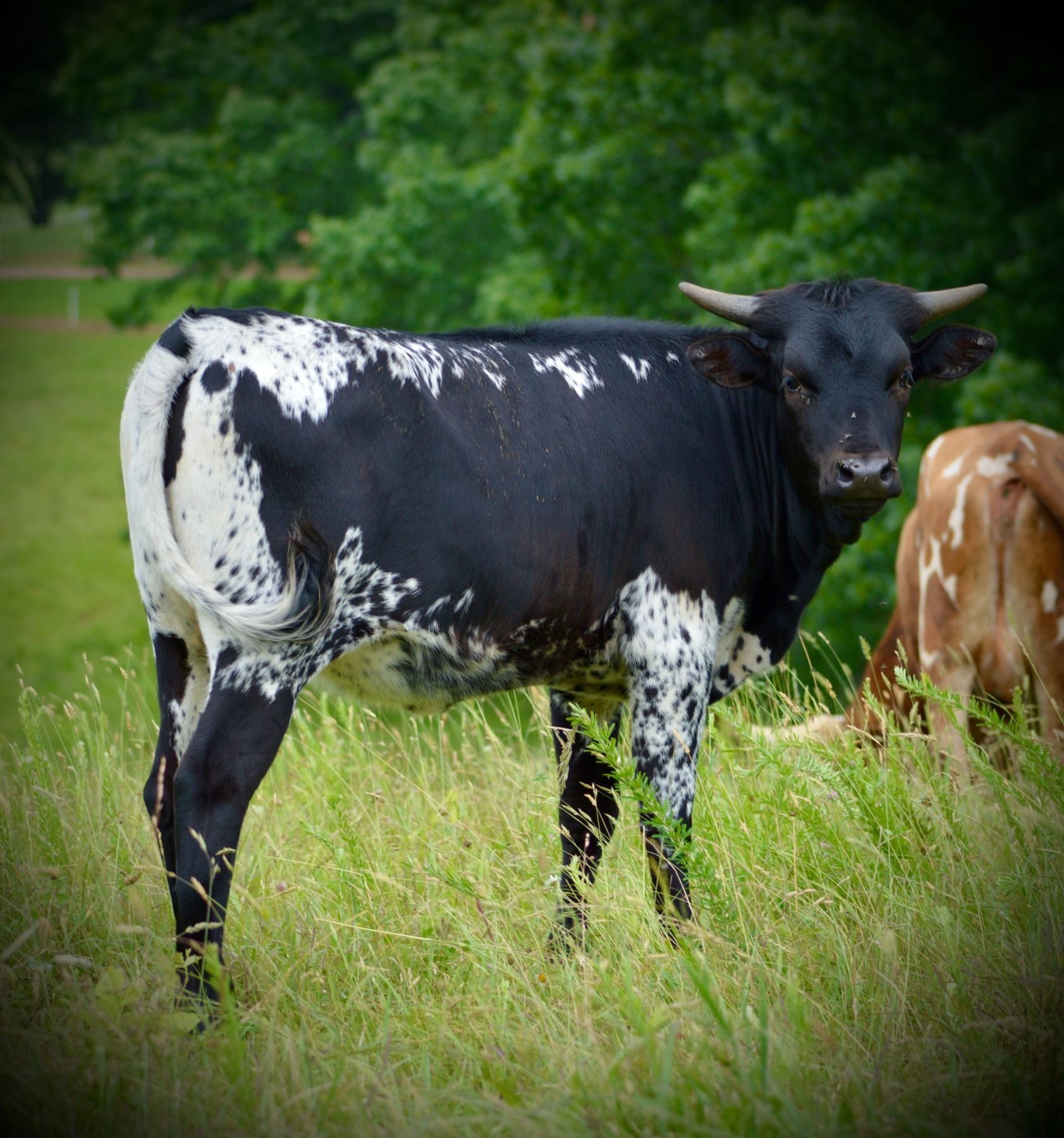 This heifer will be a hard one to let go! She is out of our most FAVORITE cow here at the farm, M7 Jaimy. She is the black and white lacey-faced beauty from M7 Longhorns. M7 Jaimy has RM Miss Kitty, Tuff Cowboy DC, Jamoca, and Cowboy Tuff Chex. MCC Little Deuce Coupe’s sire also came from M7 Longhorns. M7 Pacific Dusty has Pacific Cowboy 40, Rio Dustette, RC Pacific Mermaid, and JP Rio Grande. This little heifers pedigree is stacked with some greats! And she is a full-bodied, correct gal that will be an easy keeper just like her dam.