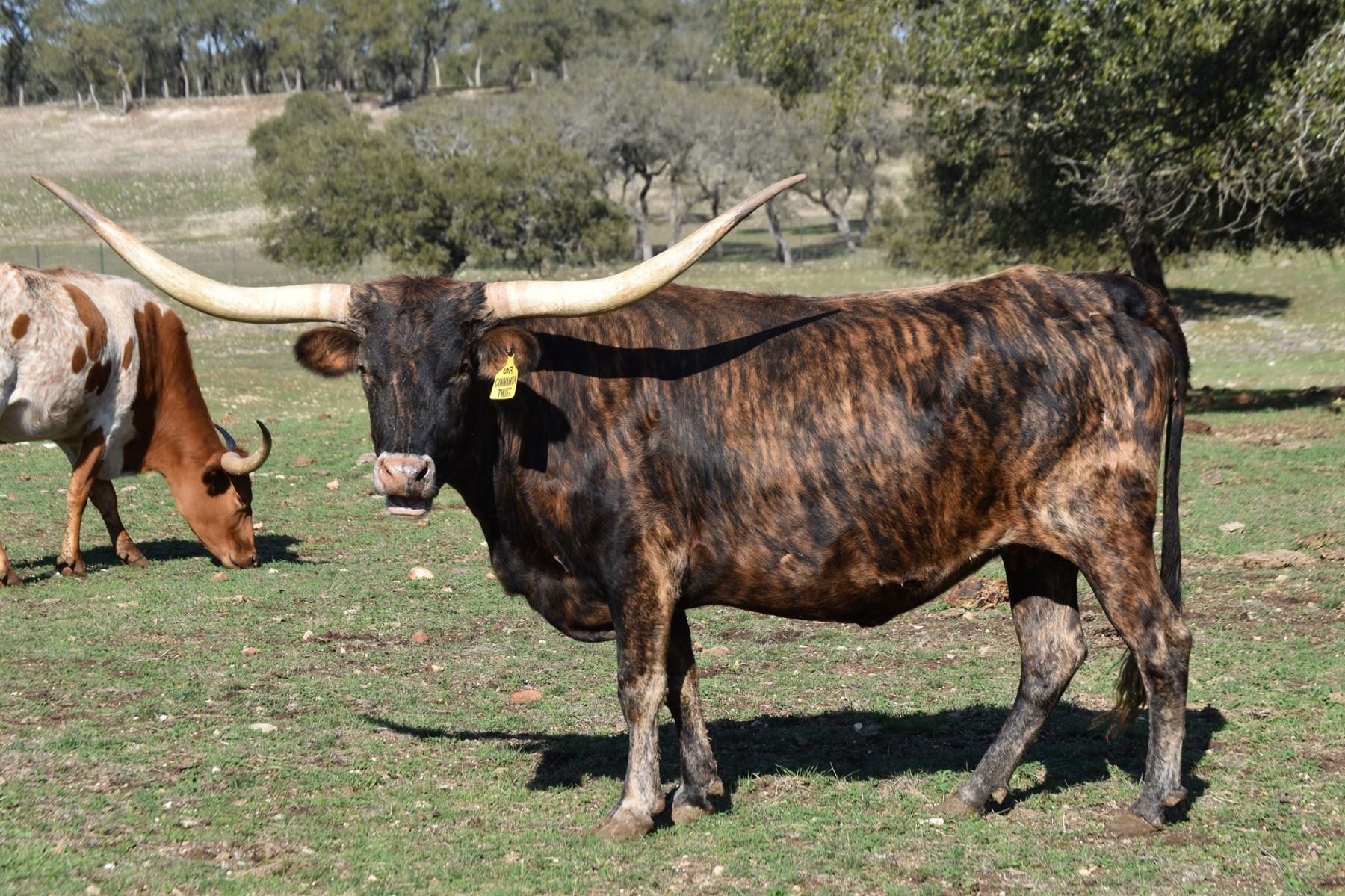 COMMENTS: Nel-Tam Cinnamon Twist is a wonderful cow with a sweet disposition and great brindle color. On 11/13/2020, Cinnamon Twist was vaccinated, and her horns measured 68½” TTT with 80½” TH. She is OCV’d, TB free, and Brucellosis free.