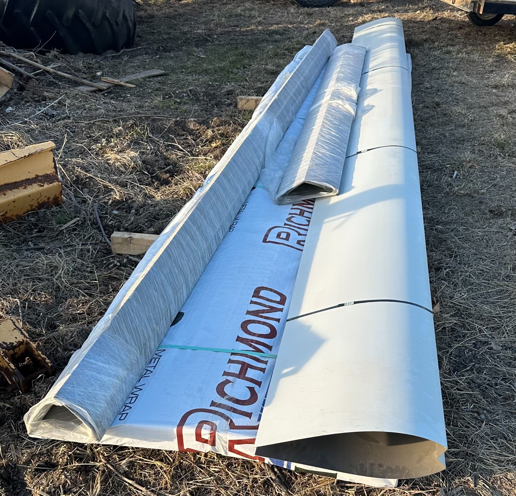 Charcoal metal, 56 pieces at 17', 10 pieces at 12', two 20' valleys, 11 ridge cap, two 14' rakes, four 18' rakes