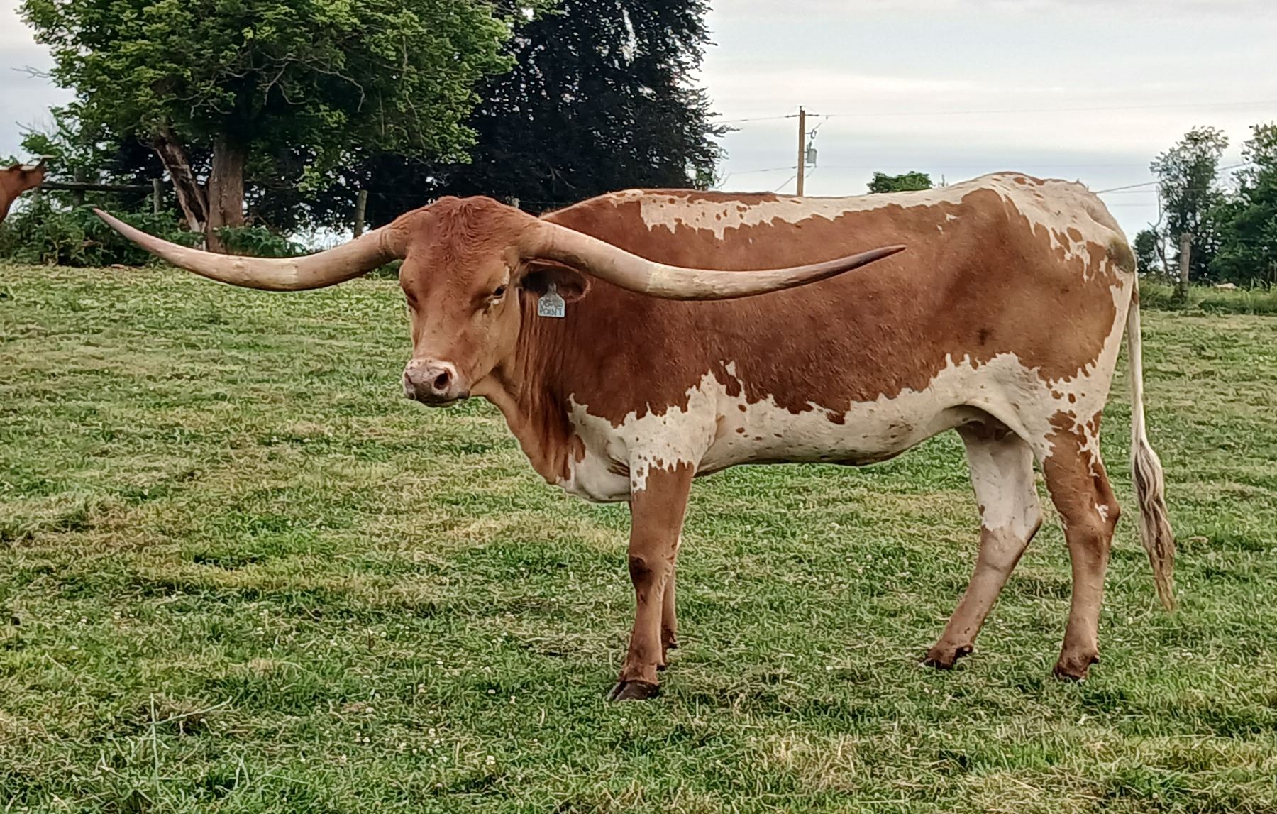 Raises a big calf and is a very good mother. She has a lot of swooping horns and will