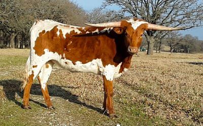 This little lady was 52 1/4” on February 1st- 3 1/2 months before she turned 2. Should be upper 50s at 2. She comes by it honestly- grand sires are Top Caliber and JP Rio Grande, and her paternal grand dam is RM Miss Kitty who is over 98”. Put her with your best bull for a horn explosion.