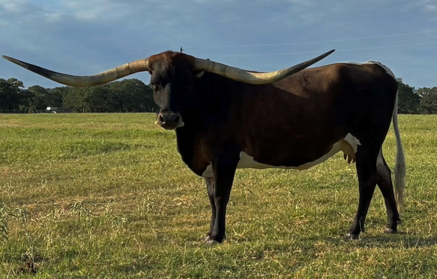 Comments: Doouble Trouble is a gorgeous black and white daughter of Scott Pace's PCC Rim Rock bull. She has 87" TTT and is well on her way to 90+". She has given me a beautiful Gold Mine heifer who I plan to keep as her replacement. She is currenty safe in calf to Cowboy Ruff Chex, our son of Cowboy Tuff Chex out of the spectacular 108" Rex's Red Rose. "Ruff" is already over 90" at 4 years old.
