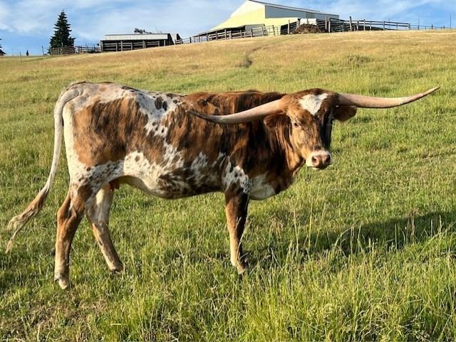 out of a super-producing Tuff and Grande 2/15 daughter: colorful, flat horns (50” TTT at 18