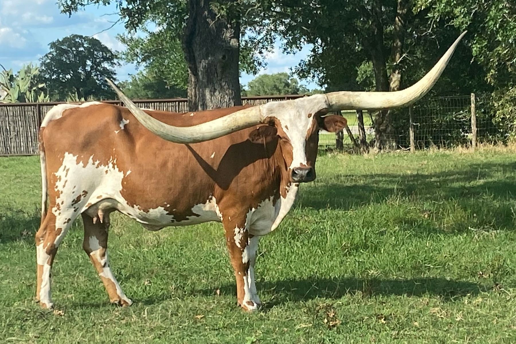 in the pasture, easy to work and horns that reach forever. Her dam, TCC Blue Zoom, wins praise from many top breeders in the industry. Milking ability in this bloodline is excellent. And her sire, Starbase Commander, has already sired one of the few cows to measure over 100” TTT with Kinetic Motion of Stars now measuring 106” TTT. Could Race also reach that magic 100” mark; she just might. Race is confirmed pregnant to Magnum Star Force, (92.5” TTT) son of CV Casanova’s Magnum (over 94” TTT) and Kinetic Motion of Stars (106” TTT).