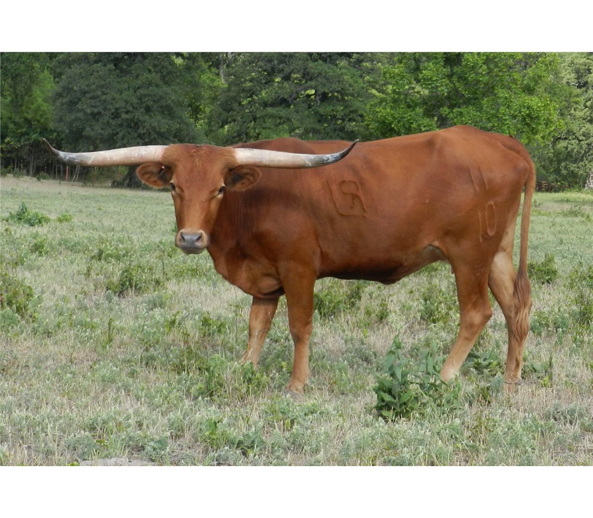 OCV'd. Nice conformation bearing a good horn set of the standard "ZD Kelly" flat horn. This girl was an excellent first time momma and has been exposed to "Iron Hail". Bred for horn. Last calf 2/18/2014.