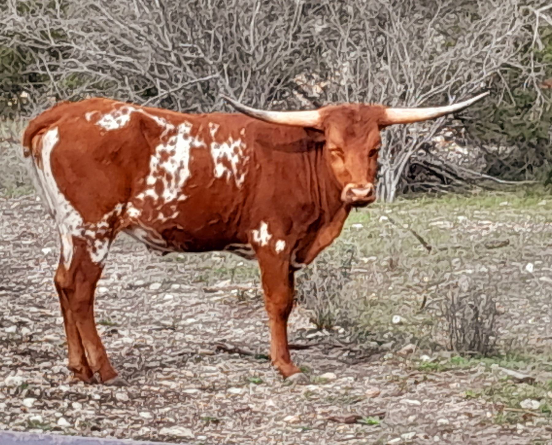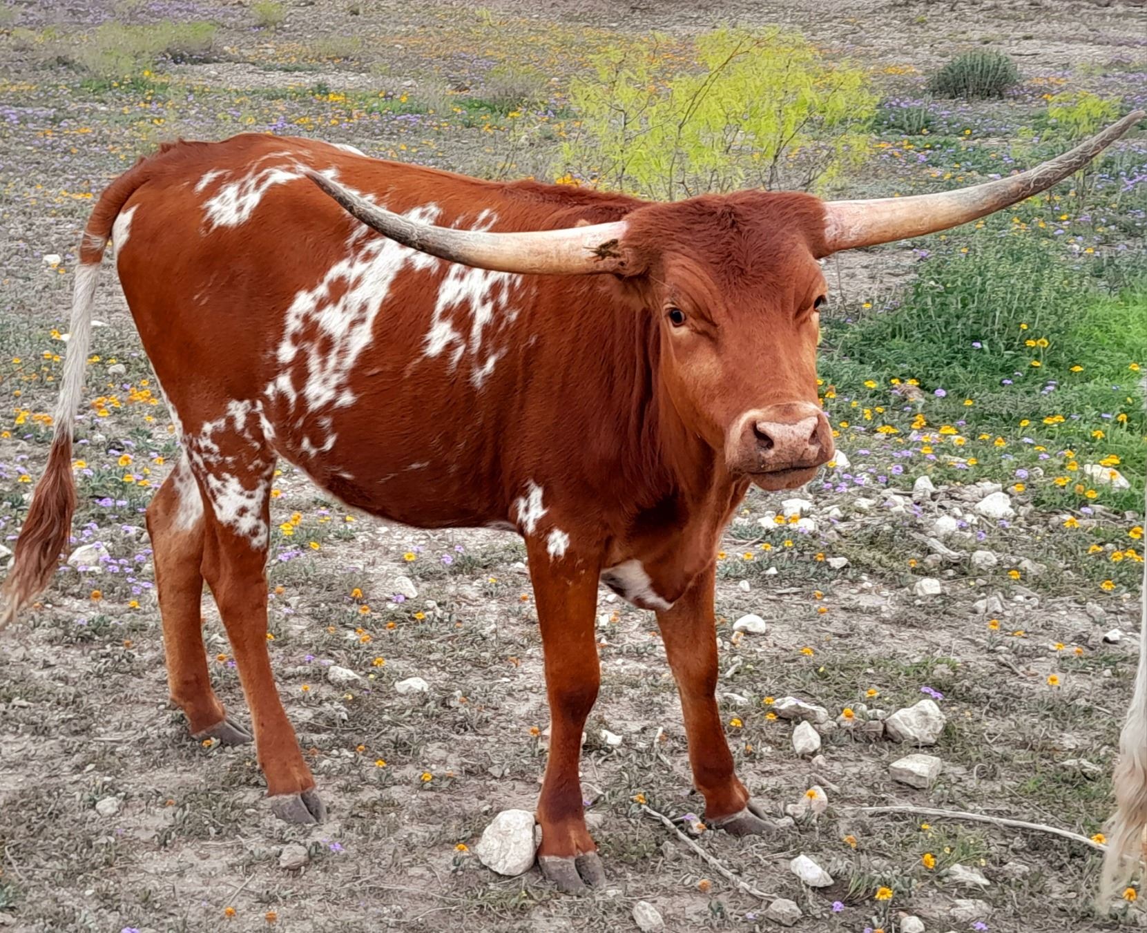 Comments: On 3/3/24, RDM Delilah Joy measured 58.0” TTT. Her lateral horn shape and curve tells us that she’s going to be very similar to her mother, CVL Commanding Joy that measures over 75" TTT at 5 years of age. RDM Delilah Joy goes back to some great animals in the industry like Hunt's Command Respect, Bandera Chex, and Peacemaker 44. Calm and gentle, she'll be a great producer!
