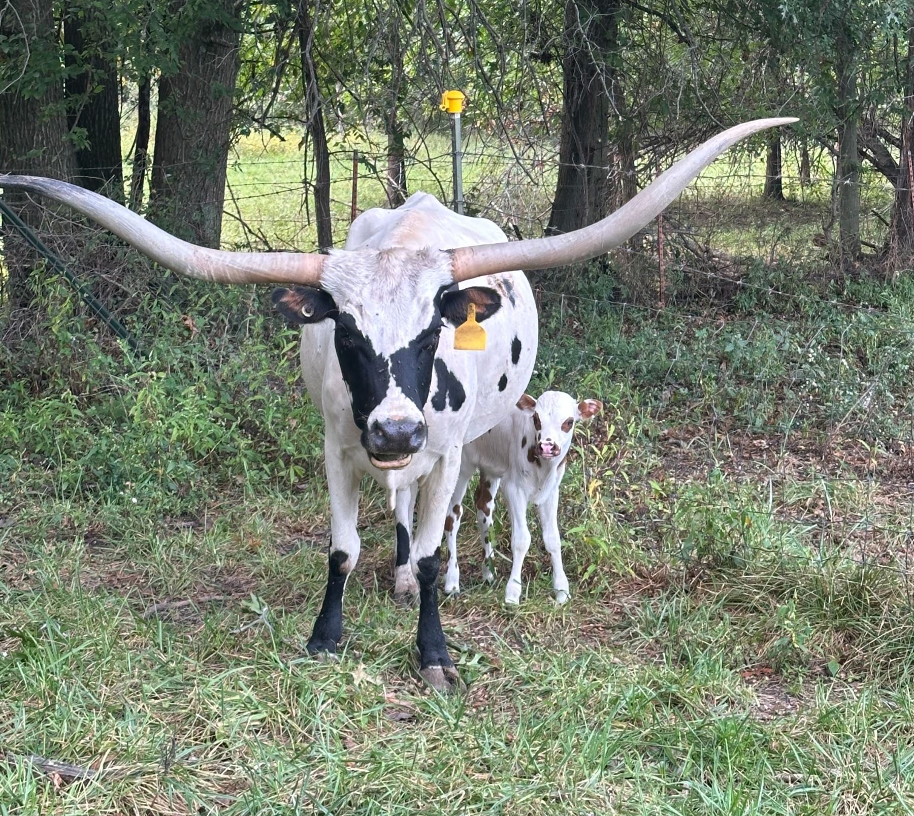 Nice cow that raises a baby every year! Bull calf at side born 9/24/25 will be split off in the sale ring and sold separately. Calf at side is out of Rocky Trail ST