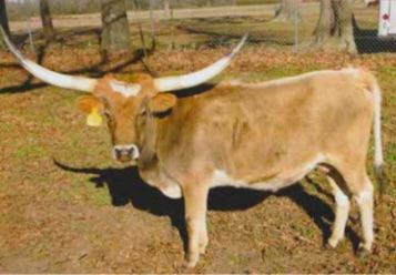 COMMENTS: Here is a 3.5 year old Tuff Chex grand-daughter with a pedigree stacked for horn. Tuff, Rio, RHF Sharpshooter top and bottom and RHF Heart Throb CFA (95" TTT). Her first calf was a nice heifer with flat horns that we will keep. We sold her dam for $12,000.