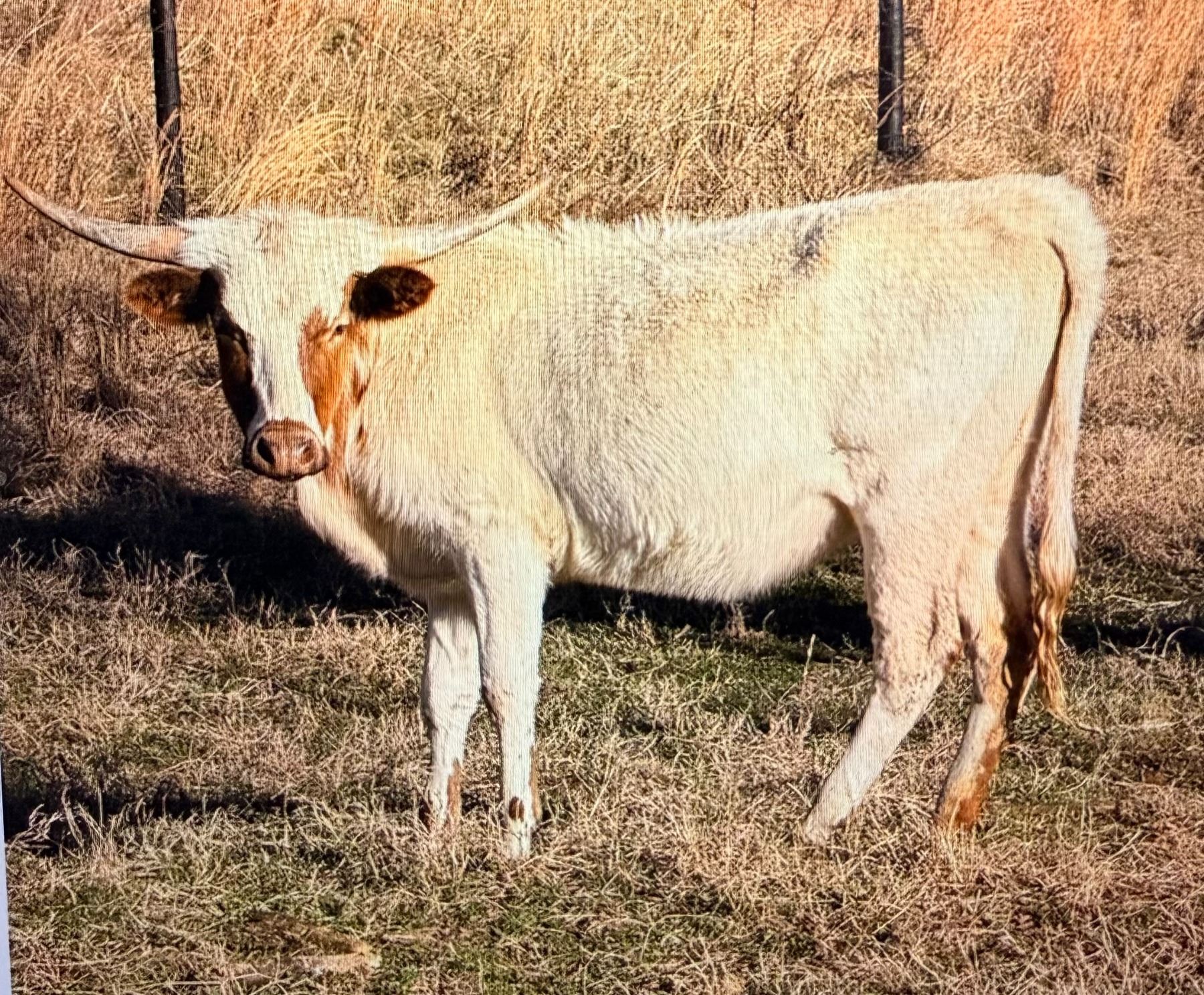 RHR Peachy Dreams is a young registered Texas Longhorn heifer with an elite pedigree stacked with proven industry genetics. Sired by HL Top Notch and out of HL Good Hearted Woman, she blends the power of Fifty-Fifty BCB and Bandera Chex lines with the consistency of Cowboy Chex breeding on the bottom side. Peachy Dreams offers strong confirmation, a clean feminine look, and the genetic foundation to mature into a productive, eye-catching brood cow. A smart investment for programs focused on pedigree, color, and long-term performance.