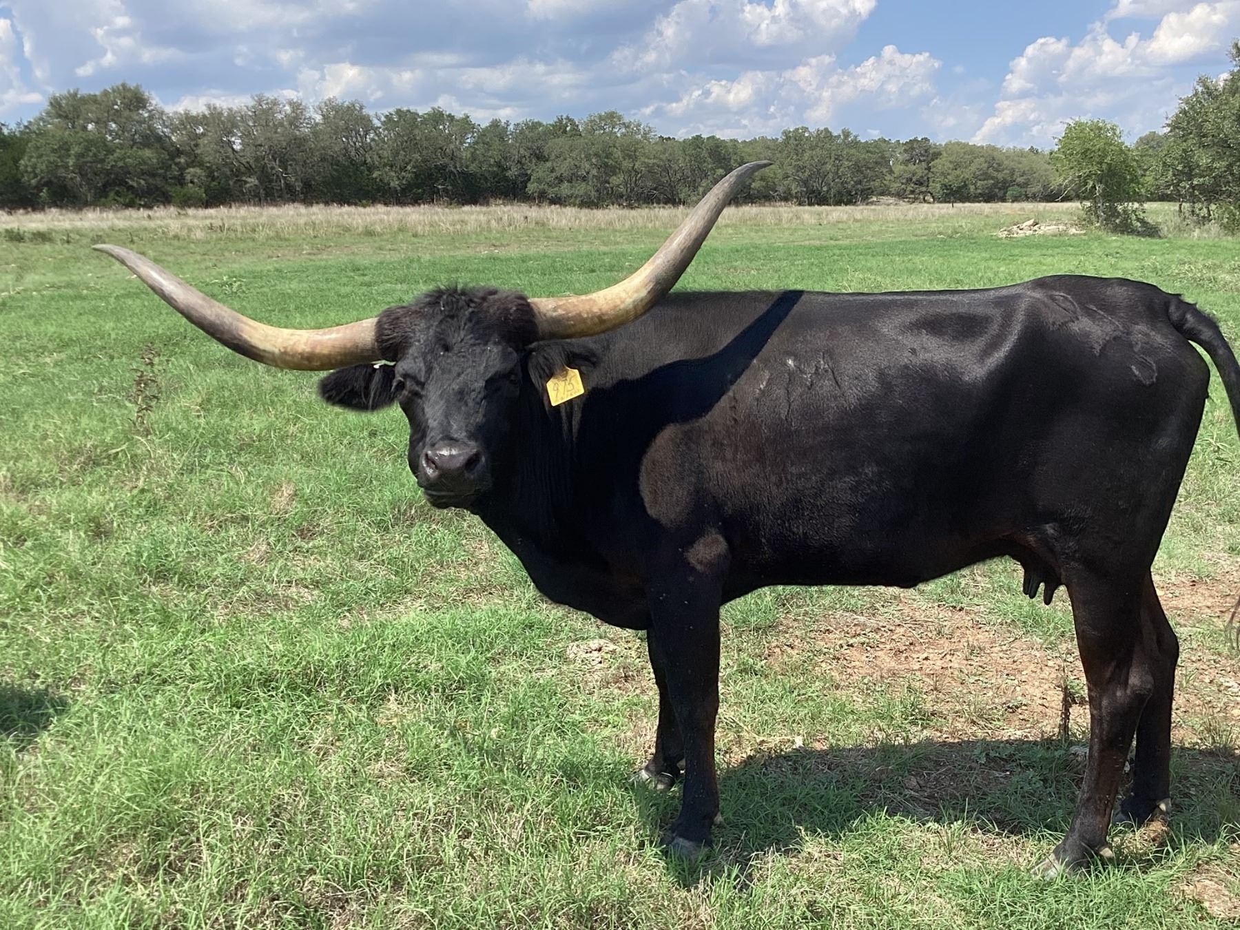 She is a black beauty with an HH Samurai heifer at side. It has taken me 5 years to get black and black and white cows of this quality in the HL herd. Red McCombs owns the dam. Put this beauty close to the house!