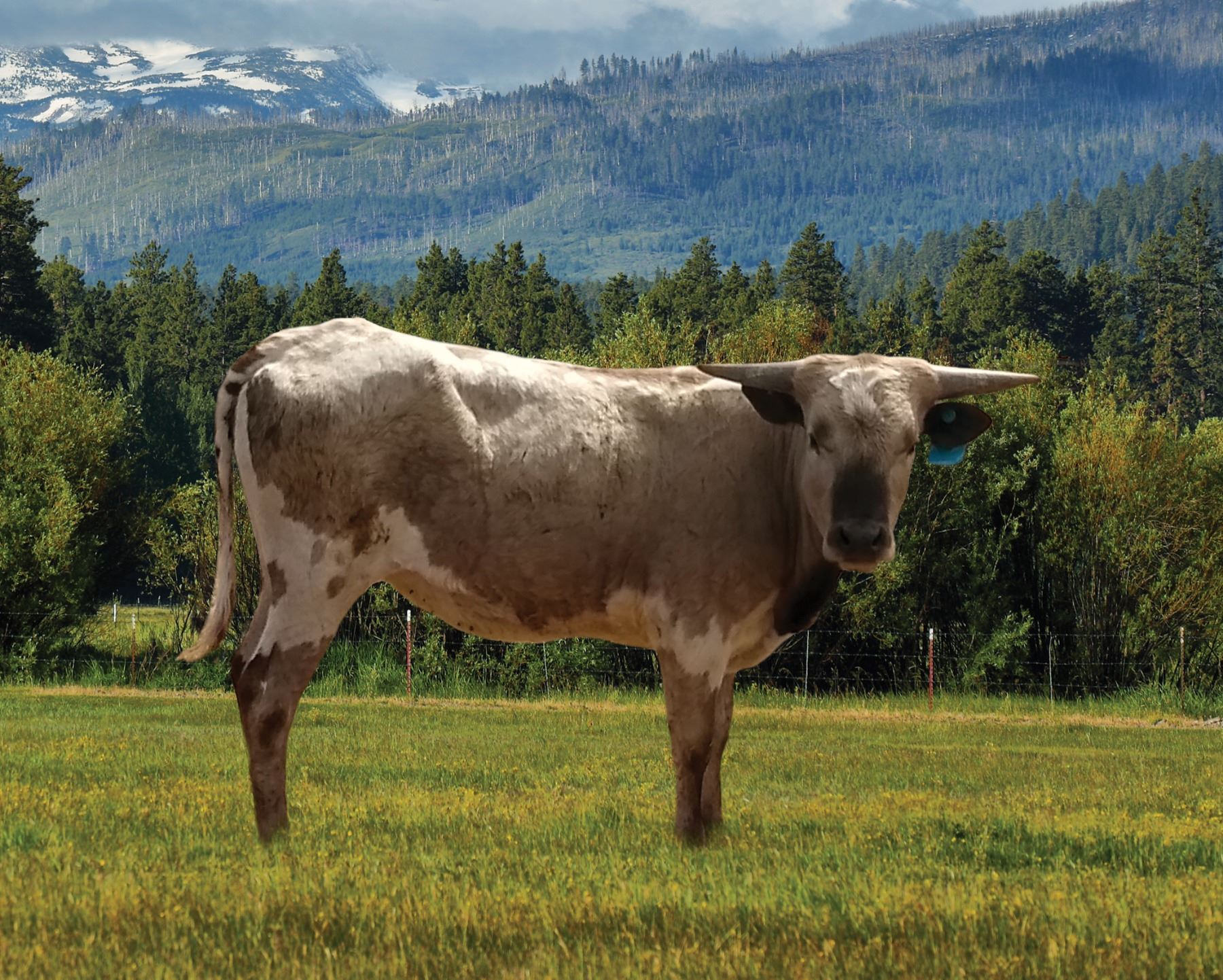 COMMENTS: If you are looking to add some of the late great Fifty-Fifty BCB to your herd, look no further! This stunning grulla and white heifer is just your ticket to add some great pedigree and color to your herd. She has been exposed to our bull HL Baron Big shot. Preg status and horn measurement announced at sale.