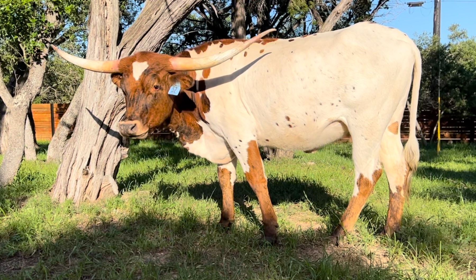 Comments: In support of Mike and Holly Davis' SOLAR ECLIPSE SALE we want to bring something exciting and a little different. RUFF CHARADE is a serious laid back horned, rare genetic heifer by the 92" tip to tip Cowboy Ruff by the 107" tip to tip Cowboy Tuff Chex and out of the 106" tip to tip Rex's Red Rose. Rex's Red Rose dam is the 92" tip to tip Max's Red Rose. The bottom side genetic of RUFF CHARADE is serious foundation Pace Cattle Company genetics with 3x Gunman and significant Ron and Jo Jones breeding. RUFF CHARADE is pasture exposed to our exciting herdsire SILENT PLAN (Jet Black Chex x Silent Iron) from 9/12/23 to present. SILENT PLAN brings in the 113 1/2" tip to tip Silent Iron by the 90" tip to tip icon, Drag Iron. The resulting calf from this mating will have (4) over 100" tip to tip and numerous 90”+ tip to tip animals up close. ANYTHING with Silent Iron in the pedigree is hard to come by.