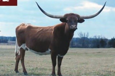 OCV. Double bred Rio Grande with a ton of horn. Exposed to Rugged Cross Reverend for a short time, (He measured over 100" Total @ under 4 years), then to Tuff Caliber, our Cowboy Tuff Chex son x a Dickinson bred Top Caliber daughter, out of their over 80" Winning Smile cow. This ought to be good! She is dual registered and Millennium Futurity eligible. Click to View