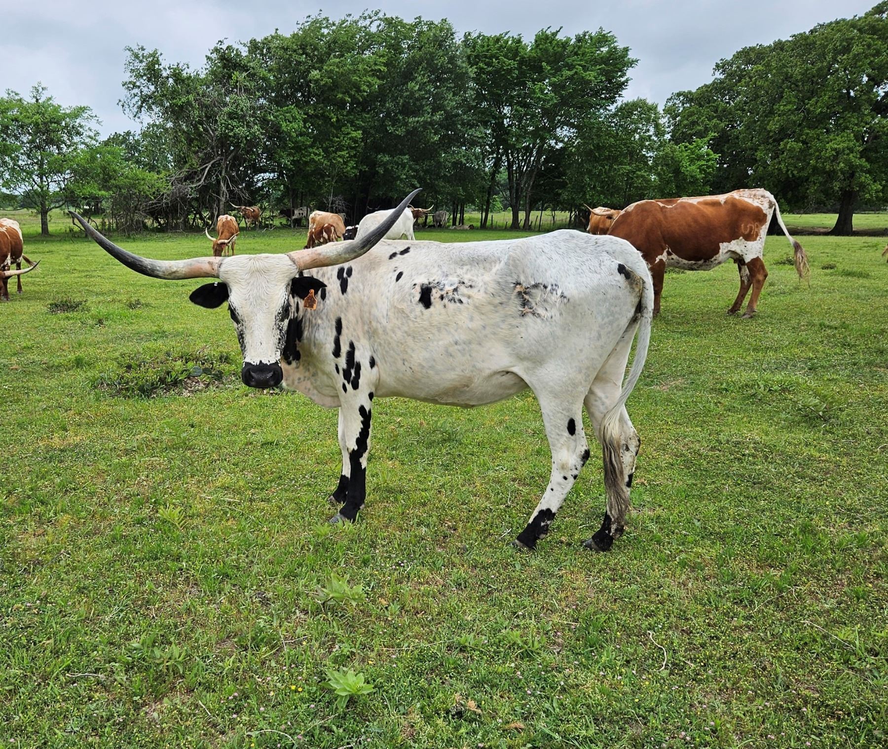 SC Black Eyed Pea is a black and white heifer out of Jagged Edge. Jagged Edge goes back to Cow Boy00, Top Caliber and Tijuana Taxi! On the bottom Snappy Gal also goes back to Top Caliber! Her first calf was a black and white heifer, LMR Funky Coltina and SL Southern Gentleman. We are keeping Coltina. She is exposed to Top Saddle, at this time.
