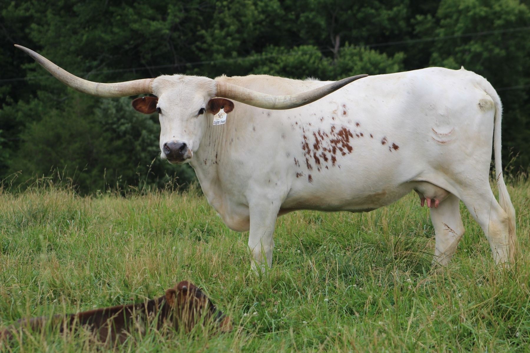 DH Light Foot is a big-bodied cow that carries her weight all year. She has over 81” TTT of horn and should be bred to the huge HR Rowdy son, Night Life BCB. DH Light Foot has been good to us over the years and still has a bunch of production ahead of her.