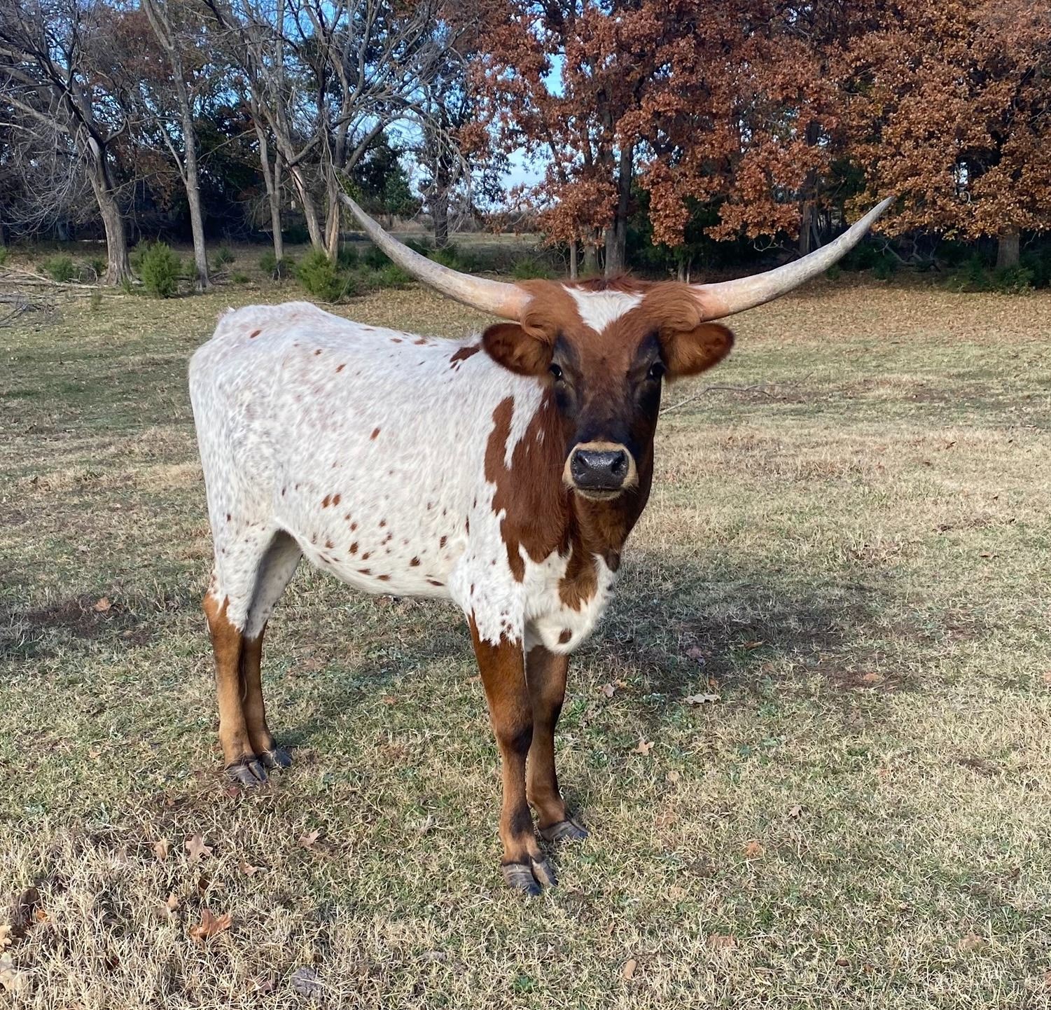 A Will Be Respected daughter that has some awesome potential. Big horn growth, black tips, and an awesome color and confirmation. Heifer has been exposed to my young Timeline son bull. Still running with bull now. Might get a nice 2 in 1!
