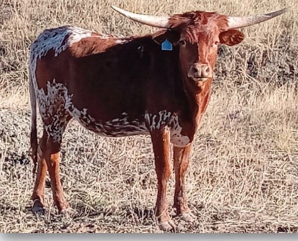 Comments: OCV’d. Bred to Handy Point 204/1 T1107287 6/10/24 to 8/25/24. He has lots of horn and breeding going back to the Dickinson Longhorns lines Point Mark, Clear Point, Clear Win, Winchester, Top Hand, Top Caliber, Win Win and much more. This sire has thrown 80% heifers and even higher percent this spring and all the color and horn to go with that. Don’t pass up on this one she will make a great addition to any herd.