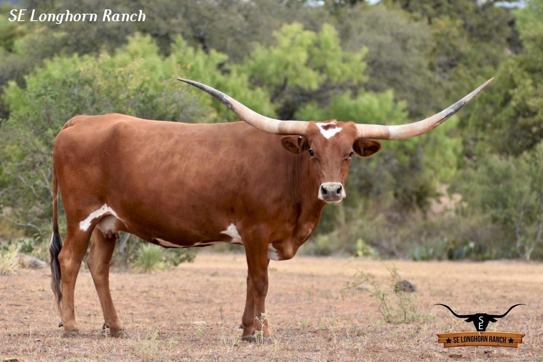 Comments: OCV’d A daughter of the over 85” TTT 3S IRON BEAUTY who is one of our best producing cows. April is a super sweet cow with perfect sweet disposition and will eat out of your hands. Her calves are colorful and are built vey nicely, LOOK AT HER PROGENY, she has PERFECT conformation, good milker, and stacked with some of the greatest genetics in the breed. On the bottom she goes to the almost 87” TTT twisty horn BHR BOOMERANG BEAUTY cow, Boomerang CP, and Hunts Command Respect. On the top she goes to Touchdown of RM and Farlap Chex. Solid cow all the way around and one of our best producers. Will be a valuable addition to any program, it’s hard to let this one go, but we can’t keep them all. Confirmed bred to HL TOP NOTCH to bring in FIFTY-FIFTY BCB & THE 93” TTT D/O MISS GRANDE. For all details visit us at: www.selonghornranch.com/consignments