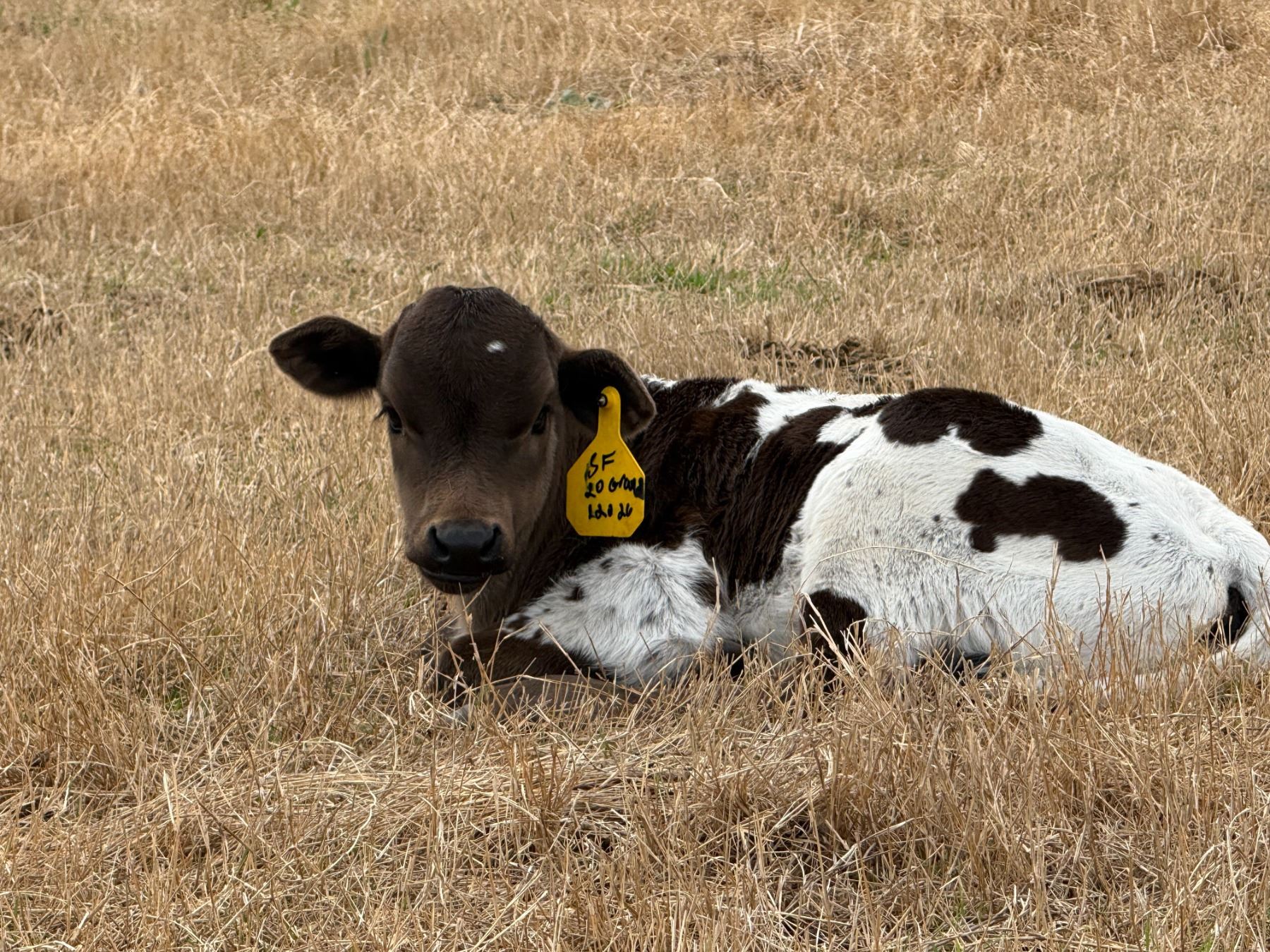 Heifer calf at side born 1/20/26 sired by PCC Dark Dust