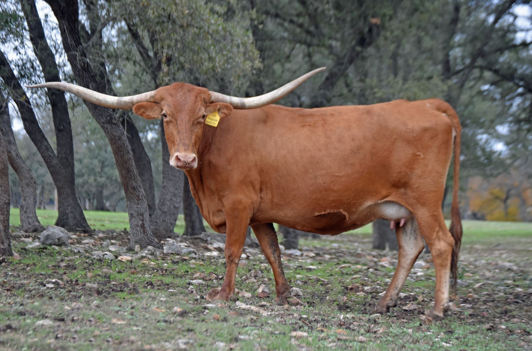 COMMENTS: Shadow Dancer BCB is a pretty, red on red brindle and, with her feminine head, nice conformation, and back twisting horns, she would make a great addition to any herd. On 10/06/2022, Shadow Dancer was vaccinated; she weighed 1160 pounds; and her horns measured 73 7/8” TTT. She is OCV’d, TB free, and Brucellosis free.
