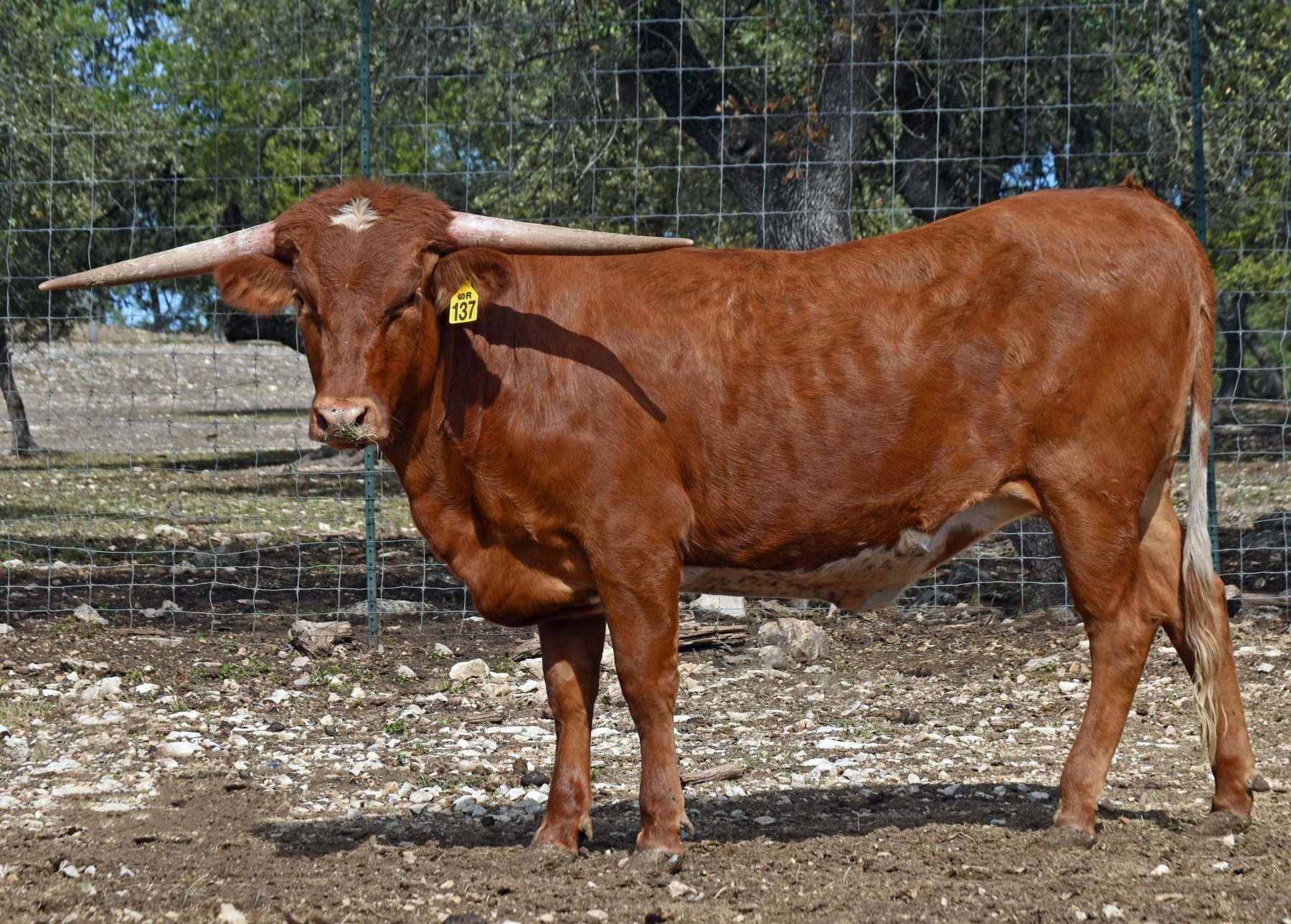 COMMENTS: SR Clout’s Celebrity 137 is a red and white heifer with a great conformation and promising horn growth. She has a lot of impressive names in her pedigree, from WS Jamakizm and FGR Sunny’s Hot Shot to Ringa Dinger and JP Rio Grande. With her genetics, she will be the “celebrity” of your herd! On 10/07/2022, Celebrity was vaccinated; she weighed 1000 pounds; and her horns measured 49 ¾” TTT. She is OCV’d, TB free, and Brucellosis free.