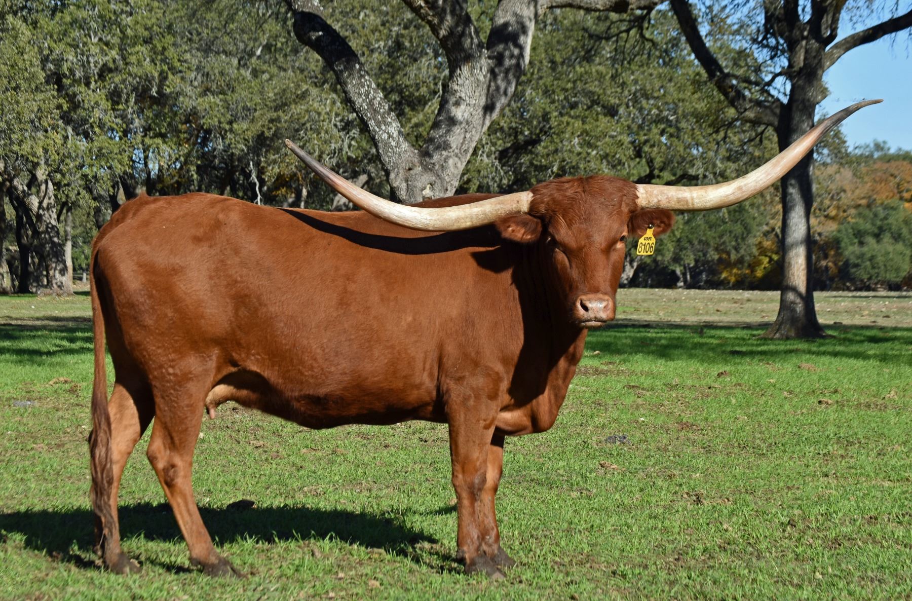 COMMENTS: SR Clout’s Melanie 8106 is built a lot like her dam, Miss Mellow 811… compact with a lot of horn. Melanie was a futurity girl before she met “Mr. Right,” winning Bronze at the 2020 TLBAA Horn Showcase for both Composite and Total Horn. Since then, she has become an attentive mother and raises well-puttogether calves. On 10/06/2022, Melanie was vaccinated; she weighed 1036 pounds; and her horns measured 79 ¼” TTT. She is OCV’d, TB free, and Brucellosis free.