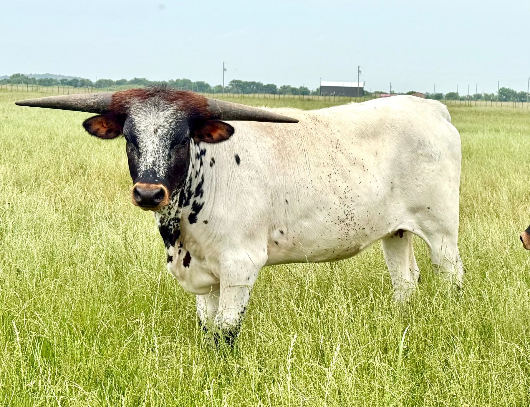 Her sire is the 2200 lb- 100 inch ttt (6 inches added back from broken horn) Colluder, who is by the famous 115 inch ttt Silent Iron. Her dam is Helm Serenade, who sold at the Hudson Stockyard sale in 2022 for $26,000.