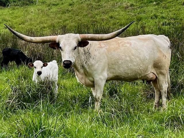 OCV'd. Very productive 5-year old with a ton of horn (75.5" T2T), a solid body and a good disposition. She has some all-time greats in her pedigree like Cowboy Tuff Chex, 7LS Miss Gambler, Iron Mike ST and Top Caliber. She comes with her 4th calf at side by A&S Full Time (by HL Jango) and is confirmed bred to TCC Eat My Dust to add Gold Mine, Rebel HR and Rowdy HR genetics. His dam HR Double Rose is over 90". More info on www.feylonghorns.com.