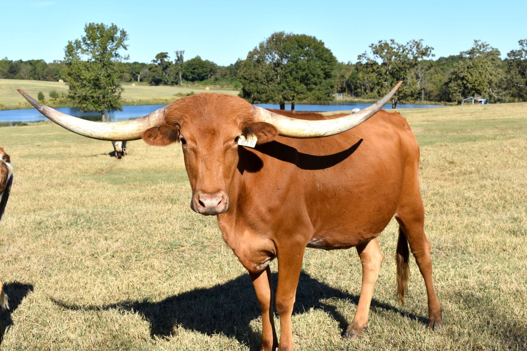 COMMENTS: Look at this young cow’s horns as they are completely behind her head and rolling back out for great TTT. Her mother has 88 TTT and is still a very young cow. Her sire was over 85 TTT. Did a great job with her first calf and his bred back most likely to CV Call of Duty who is in this sale. He is 85 TTT and 107 tot. 4x HSC Champion and 3x futurity winner. If not then it will be the black and white Gold Mine son Game Changer who was 72 TTT and two years of age. She is super quiet and child friendly. Take her home and watch those horns continue to roll out with a super calf at side.