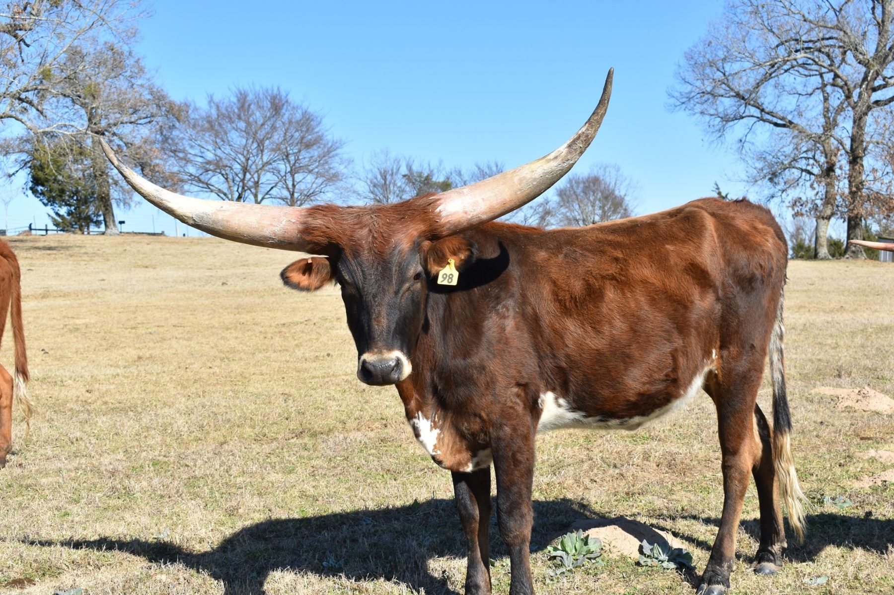 100”+ inch TTT young steer. She measured 56” TTT at 19 months with a whole lot of total horn. Her dam Silver Abby is well over 100” TH and her sire Call of Duty is 107” TH. She is going to be massive horned female. She has good size and comes from a great milking family. This heifer is easy and gentle. We are just exposing her back to our up and coming young brindle bull call Silver Star who was 65.5” TTT at 22 months. She has many greats in her pedigree starting with Cowboy Casanova, KC Just Respect, FL Rio Maxine and Cowboy Chex. Bid in confidence that she is a dandy.