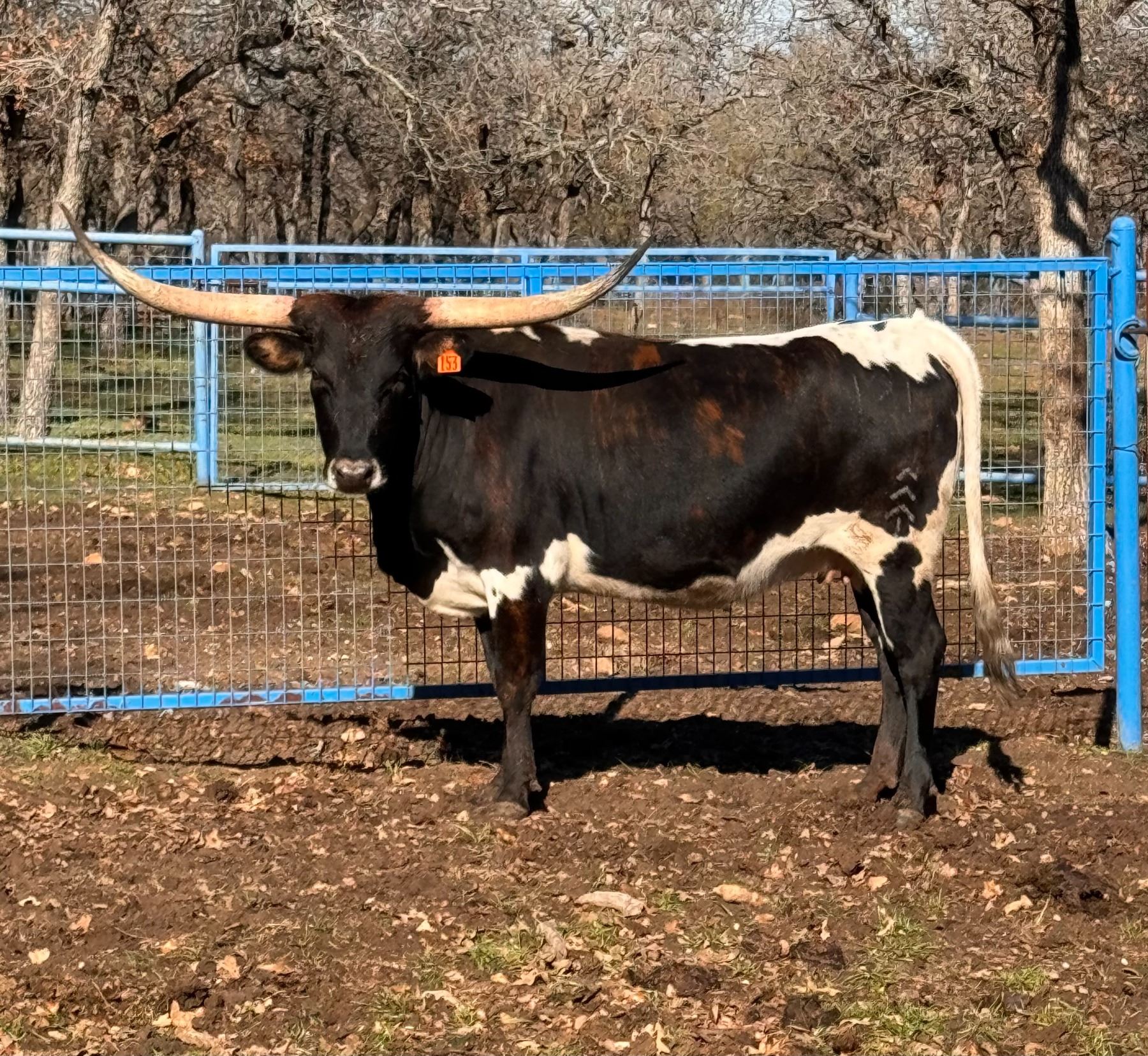 Dancer. She’s out of Stacy’s Amber, giving her Black Kettle 81 and the over 80” TTT Sweet Stacy Tattoo. Snappy Amber measured 58.375” TTT on 11/20/2023 of upsweeping horn with good, red blood flow at the base