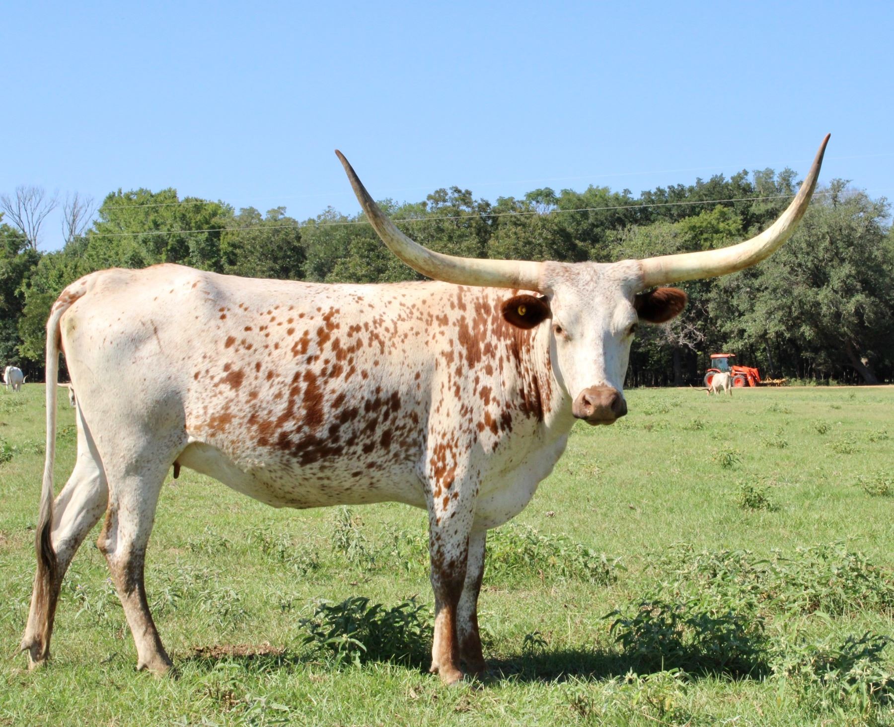A beautiful Pearl Snap BCB who raises show stopping calves. Don't let those high horns deter you, give her a little time, and they'll roll out beautifully. Bred to High Country LP, 11/12/2022 palpated 7 months.