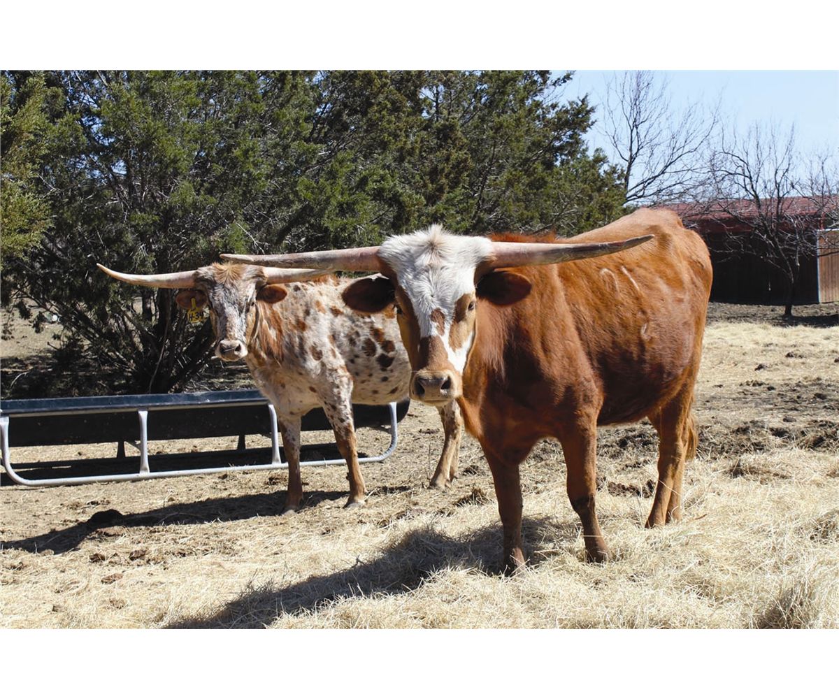 horned females at an early age. Her sire ZD Kelly is an over 80" Tip-To-Tip bull. She recently had a bull calf which we are keeping because of the genetics. She is confirmed safe LOT in calf to Tumbling Dice SRC, (a LLL Lucky son) via ultrasound.