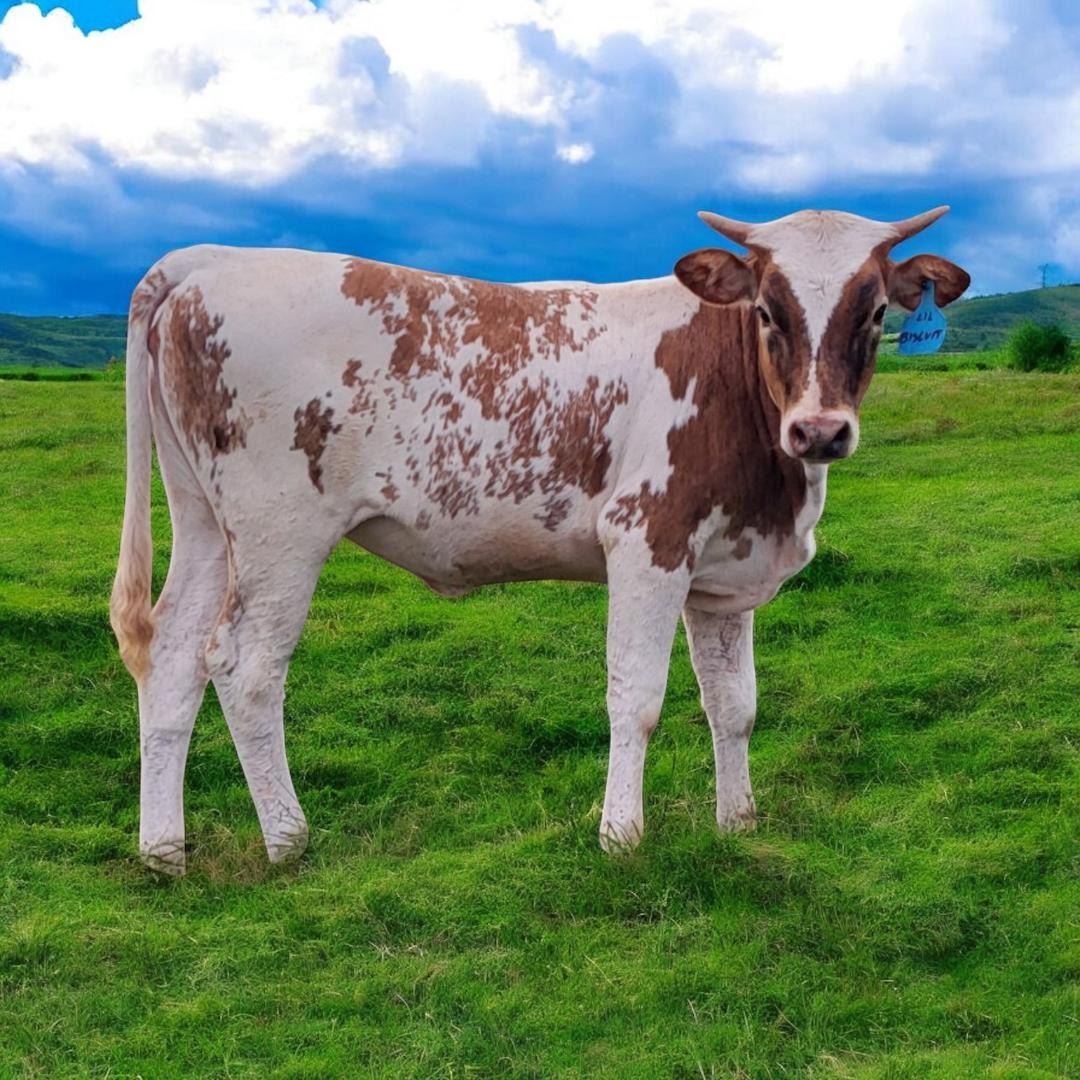 COMMENTS: Beautiful brindle heifer out of an over 80" twisty horn cow bred by Jimmy Jones. Her dam has some heavy hitter in the pedigree. The sire is an over 96" bull out of a 105" dam. This well-built heifer has it all for horn, futurities, and pedigree.