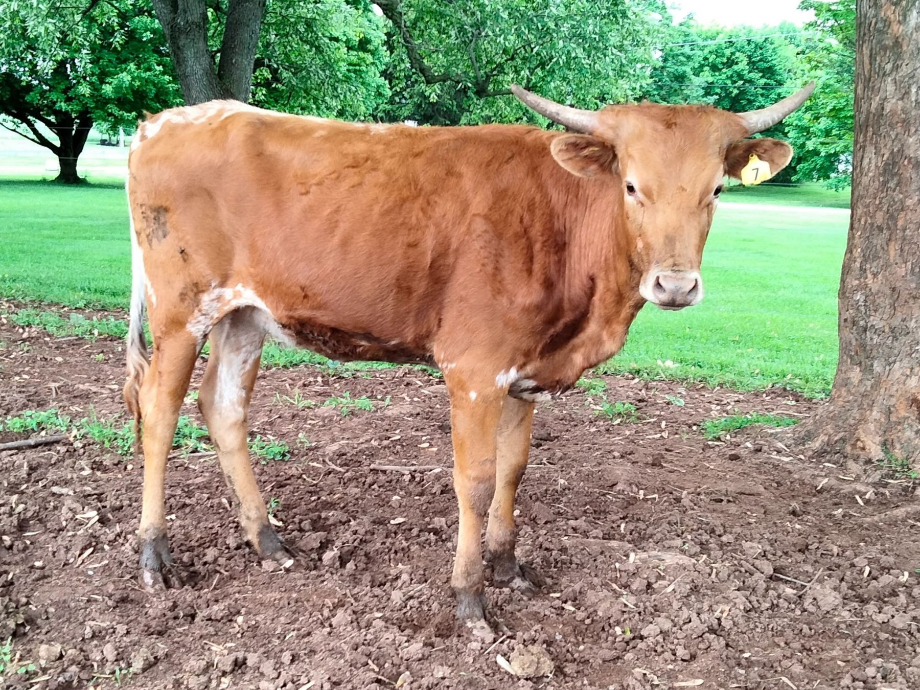COMMENTS: A flashy heifer with horns going back that should give you a twisty horn animal