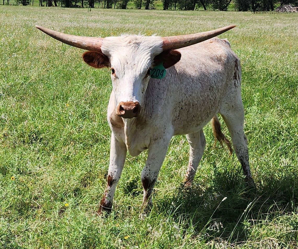 White Smoke 204 is a daughter of TCC Gunsmoke from a daughter of Fantom Chex. She will get more roan speckles with age and become a gorgeous female for your herd. She measured in at 49 1/2" at 17.5 months of age. She has been exposed to Blue Streak from 9/14 to 11/14