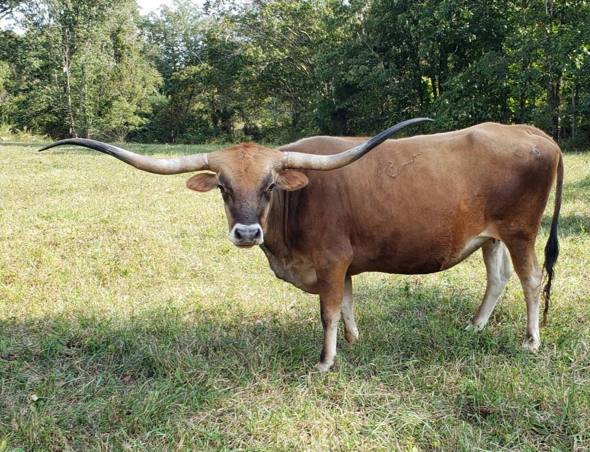 This one hurts to let go. She’s a beautiful Parker Brown with lateral rolling horns. She is currently exposed to Silent Icon (Cowboy Tuff Chex x Silent Iron).